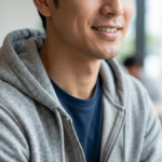 清潔感のある私服の写真を1枚。自撮りではなく、誰かに撮ってもらった自然な笑顔がベスト。顔出しが不安なら、首から下+雰囲気が伝わる写真でもOK - 自己紹介文